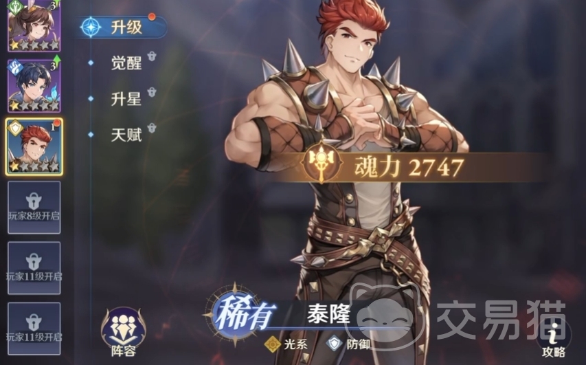玩家在获取到泰隆之后,需要给其进行升级,他的武魂为大力猩猩,不需要额外获取,我们通过完成任务就能解锁。在组队的时候,他可以站在前排,能够帮助队友抵挡一定的攻击伤害。