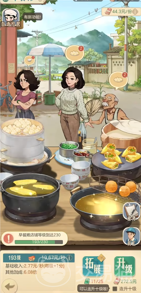 商铺的提升可以提升所出售商品的售价所以一开始就先让大家把商铺的等级升上去,而商铺的等级提升的同时后勤的补给和员工方面也要相对地进行提升,这样一来可以让商铺的原材料制作速度提升上去,商铺的营业额这样也会不断地上升。自动出售会随着商铺等级的上升而解锁。