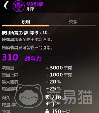 V8引擎:这是来自于游民阵营的一大引擎,等到游民阵营满足六级就可以制作史诗级的部件。喜欢的朋友可以在市场购买,但制作的成本还有制作的时间比较。主要的特点是战车每朝着前方行驶100米,都会降低20%的武器冷却时间。也就是说轮子旋转的速度越高,这意味着冷却刷新的速度就更快。