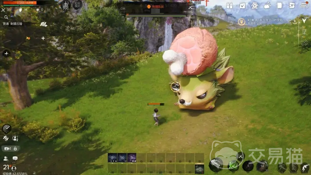 如你所见,刺猬队长是一只体型巨大的刺猬,它虽然有着可爱的外表,但战斗能力是相当可观的,压迫力非常的大,一看就不是一个好惹的家伙。事实也确实是这样,其实他是一个野外的boss,并不是那种普通的小怪,所以击败他的奖励是非常丰厚的。
