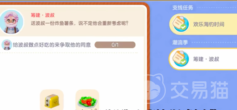 首先来介绍一下波叔,波叔在前期不仅会为玩家提供一些初期所需要用到的工具和材料,而且在游戏当中他引导玩家主要完成的功能分别包括家居收集房屋装修以及一些餐点的制作玩法。而且播出在游戏当中还开启了自己的材料商店如果玩家在初期觉得设备或者是材料不够的话,那么可以赶紧前往波叔那里完成材料的交换和购买,方便整款游戏作品的推进。
