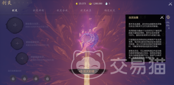 剑灵栏位中总共会有三个剑灵,可以分成一个主栏位,还有两个副栏位。装备主剑灵就能启用100%的剑灵能力值,装备副剑灵就只能获得50%的能力值。