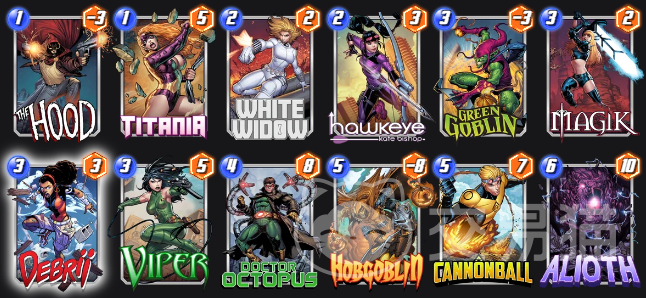 这个玩法的两员大将除了黛波丽以外,就是红兜帽和恶鬼了,这两个角色的战力都是负的,尤其是恶鬼,足足-8点而且还能自动换边,红兜帽和黛波丽生成的石块可以通过蝰蛇的效果直接换到对面去,这样对方不仅会降低区域战力,还会因为该区域已经被石块塞满了而不能再使用卡牌,这样就相当于已经丢失掉了一个区域,大家只需要在全力争夺剩下的两个区域就可以了。