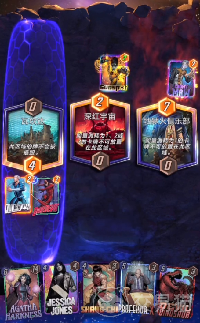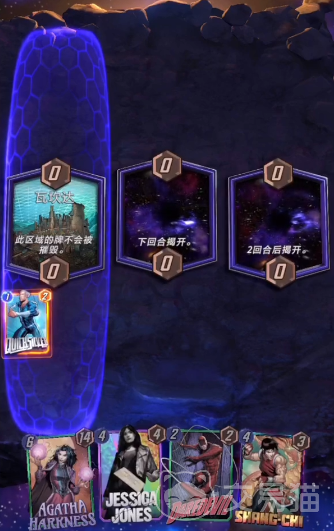 有些朋友可能会问,次元行者不是要确保上一回合不出牌才能放出来吗,在阿加莎自动出牌的模式里怎么能保证次元行者能出场呢,其实这个问题很简单,阿加莎的出牌模式是自动默认从左到右区域的,而前面的多米诺以及低费卡已经占据了最左侧的空间,到了可以上六费卡的时候,只有一个巨鲸兽和一个次元行者,巨鲸兽无法放置在左侧区域,所以就自动跳过一回合然后放置次元行者了,是不是很妙的一招?