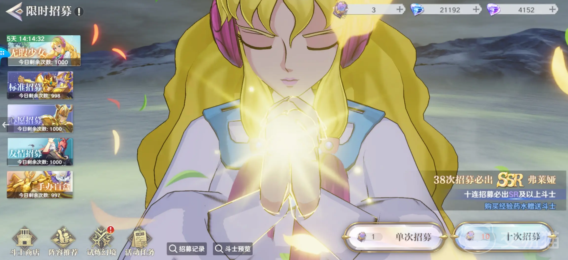 弗莱娅作为游戏中的SSR级别的限定角色,弗莱娅需要再特定的卡池时间里抽取。一般来说只需要连续地抽取了38次之后,就可以百分百获得这个英雄。若是大家对其感兴趣的话,还可以进行实时地预览。