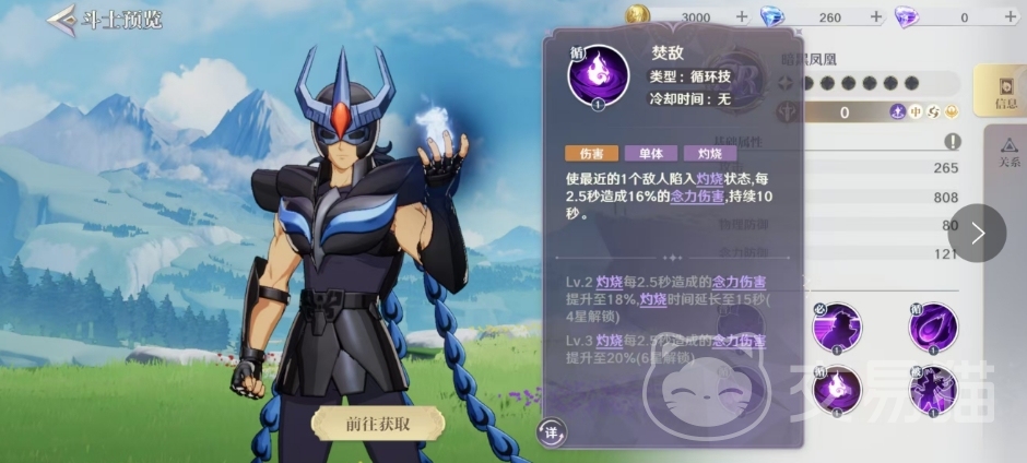 作为SSR角色,强度还是小编比较推荐的,暗黑凤凰的普攻技能,暗黑凤凰拳,是他最基本的攻击方式,能够对最近的敌人进行三次连续攻击,每次造成17%的念力伤害。这种攻击虽然简单,但在战斗初期快速积累能量条,为释放更强大的技能提供了基础。