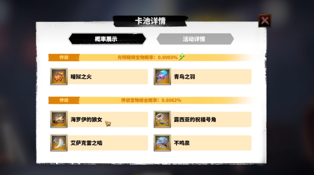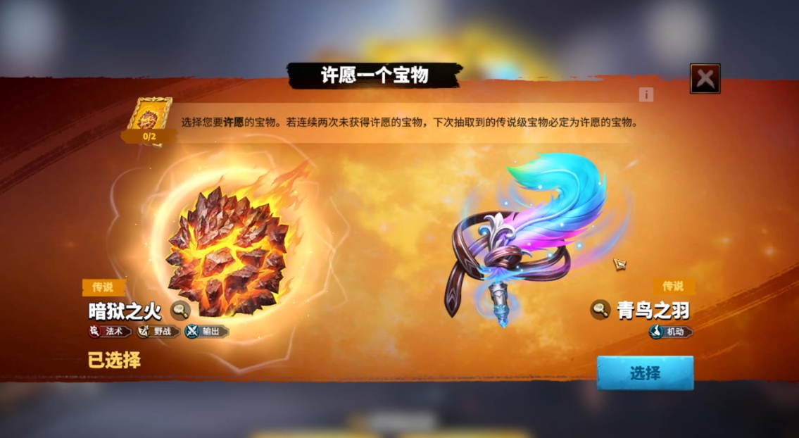 这时候还可以在限定宝物中自由选择一个作为自己的心愿宝物,选择之后即可自动抽取。如果两次都获取不到自己所想要的宝物的话,那么第三次就可以百分百获得,也就是所谓的大保底。抽取到的话,就会再次进行重置。