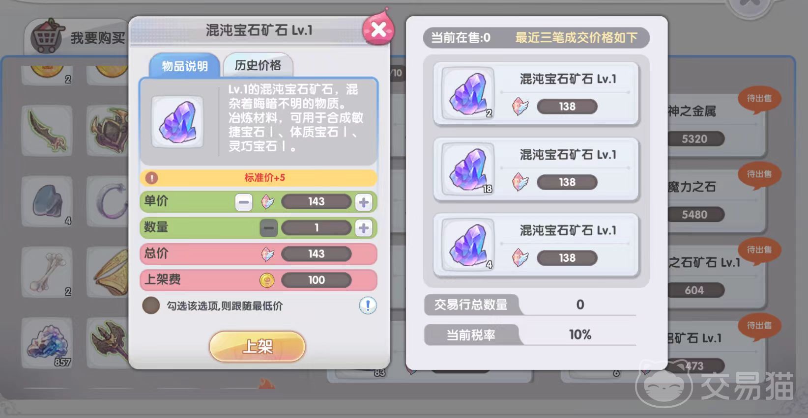 交易行的入口有两个,第1个是在普罗德拉找到npc杰克达尔,第2种是在游戏的菜单中可以直接进入。目前在交易行中的方式主要有两种,一种是使用水晶来进行交易,一种是使用钻石来进行竞拍。进行水晶交易的是一般商品,竞拍的都是一些稀有商品。先来看一下一般商品的交易,只需要将能够进行交易的物品放到交易行中,调整好出售价格以及数量,就可以直接上架了。其他玩家能够直接浏览到,然后点击购买,在这里进行交易有一定的税率,所以会扣除交税之后再获得收益,也可以查看到当前出售物品的历史出售价格,这样即使之前不了解行情,也不至于选错价格。
