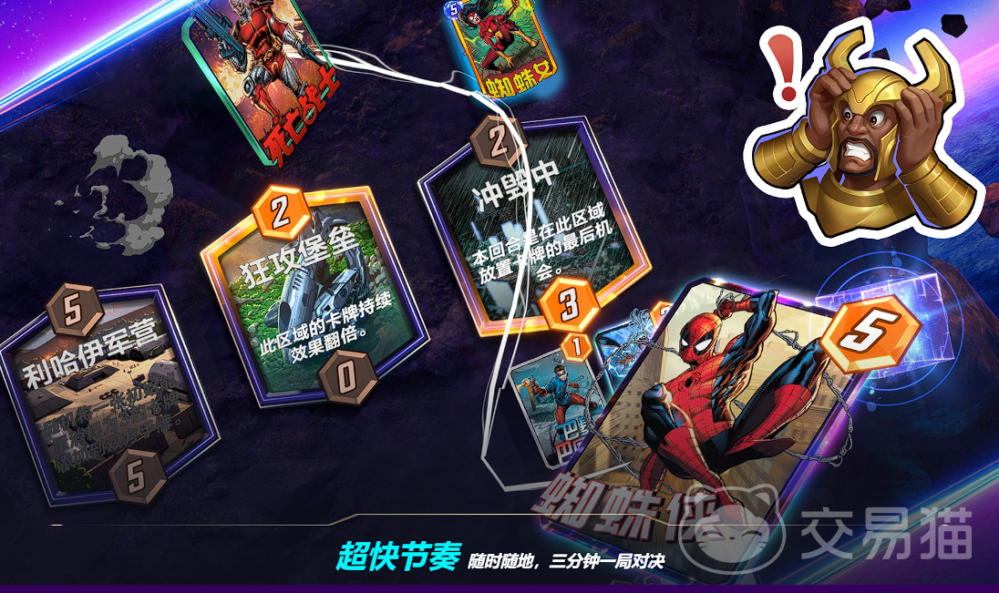漫威终极逆转的对战节奏非常快,每局游戏最多只需要6回合,大约3分钟就能结束。这种快节奏的对战方式非常适合碎片时间的朋友们,让你感受能够在短时间内体验到策略对决的乐趣。而且游戏中设有多种随机场地效果,这些效果会随机出现在对局中并改变场上的规则。玩家需要根据场地效果的变化及时调整自己的战术和布局以应对挑战。当然作为漫威手游系列,丰富的卡牌和角色选择自然是非常丰富了,相信一定不会让大家失望!