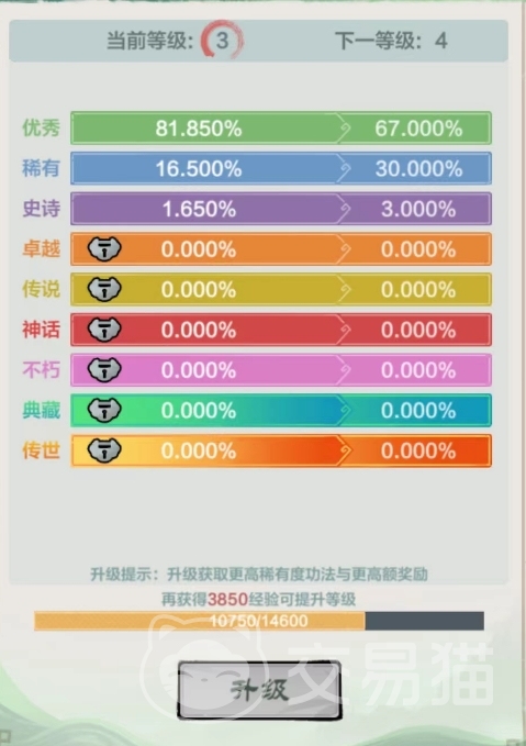 在打开功法宝箱时,所能获得的收益与宝箱等级有关,宝箱等级越高就越有概率开出更好的功法,因而更建议玩家们前期先开出几个低级功法进行过渡,等用其它的宝箱将等级提上去后,再打开功法宝箱来获取高品质的功法。