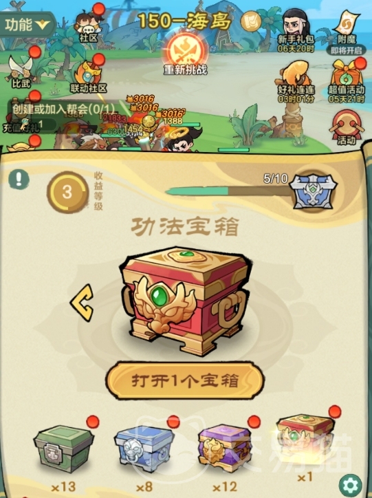 以上就是小小英雄功法宝箱怎么获得的方法。功法宝箱虽然没有其它三种宝箱好获取,但整体的难度也并不大,只要玩家们勤奋积攒,就能较为轻松地攒下不少,令自己开出想要的功法。