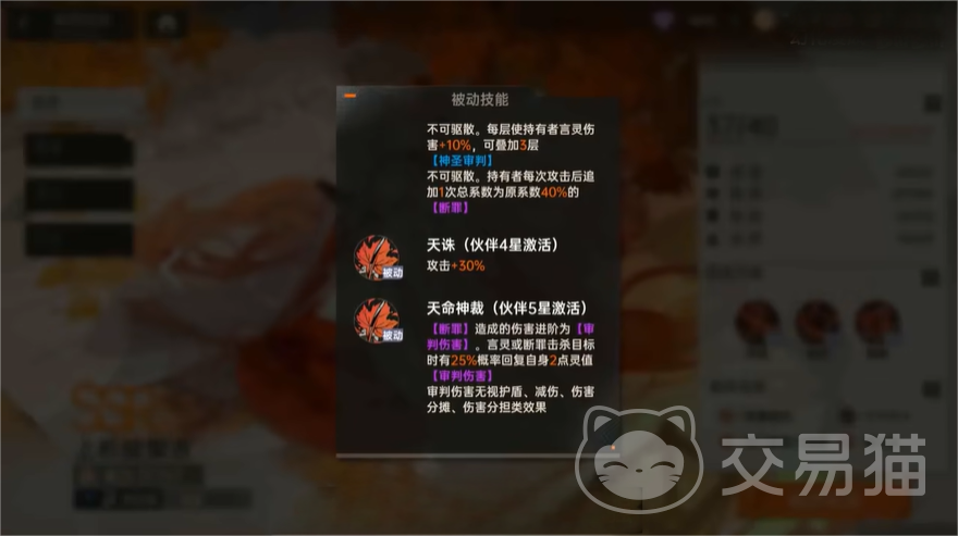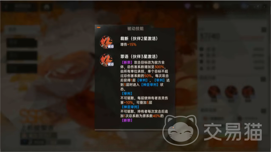 言灵“审判”,使其能够能够对敌方全体造成伤害,同时还有着50%的概率使其无法受到治疗,使得敌方无法利用辅助角色的回血能力来进行持久战,同时技能释放后的追加攻击会对血量最少的角色造成伤害,能够让玩家更快解决对方的残血角色。