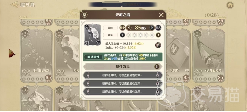 而且天河之扇还拥有一种独特的防御机制,当角色受到攻击时,有3%的概率触发天河之扇的护盾效果,一旦触发,角色将在5秒内获得额外属性2%的护盾效果,并且这个效果每隔10秒就可以触发一次,这种护盾效果不仅能够有效地吸收伤害,还能为杰奈什提供更好的生存保障哦。