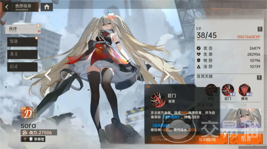 在防御型角色中,血统等级为D的sora却有超出其血统的水平,其言灵“巨门”也与其可爱的形象有着天壤之别,该技能使用后会对敌方全体角色造成少额伤害,但是会为自己添加“减伤格挡”这一buff,大幅度提高格挡率与格挡减伤,为全女队创造更好的输出环境。