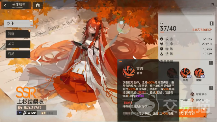 上杉绘梨衣可谓是攻击型女性角色中的扛把子,言灵“审判”的释放在对敌方全体角色造成伤害的同时有概率使其陷入禁疗的状态,并且后续两回合的攻击会追加一次断罪(对血量最低的敌方玩家进行一次攻击),随着绘梨衣的星级提升她的言灵也将发生质变,六星的上杉绘梨衣追加的断罪目标是敌方全体角色,同时该伤害无视护盾、伤害减免等所有减伤型buff,并且在击杀任意敌人后会回复自身的能量。