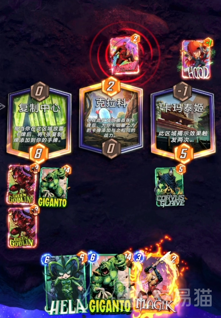 这个玩法的技巧就在于,魔多客可以没有任何条件的把大家的当前手牌扔掉,而海拉的效果则是直接把被丢弃的卡牌召集到场上,无视这些卡牌的放置条件,所以二者相结合以后,无论是只能放在左边的巨鲸兽,还是要求上一个回合不能放牌的次元行者,统统全都随机回到场上,能直接给己方增加许多战力值,如果手牌里还有其他战力超强的卡,一次就能拉回来超过40点战力,即使海拉会降低被拉回卡牌的2点战力,效果依旧爆炸。