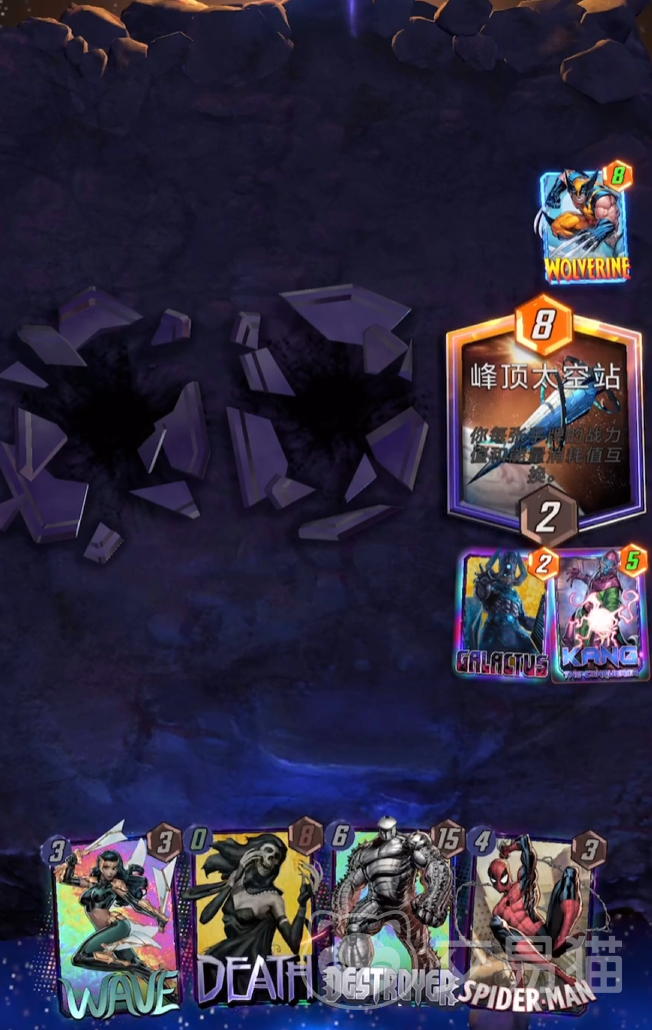 还可以用蜘猪侠这张卡片给对手的关键效果卡牌无效化,比如对手有一张钢铁侠,在用康观察到以后直接上蜘猪侠把其变为小猪,这样就会直接破除对手的一整个体系。