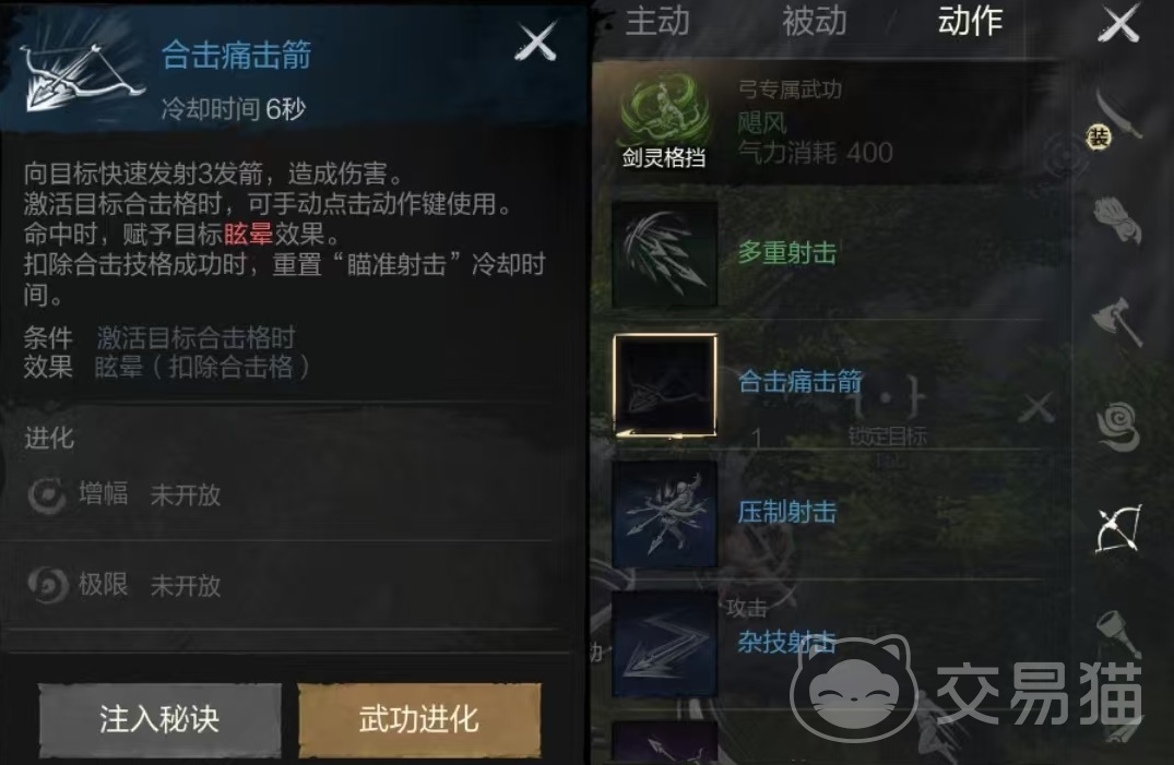 在游戏中不同武器对应的合击技能也有所区别,例如剑武器的合击技能就是合击疾风剑,拳套的变成了合击猛击,斧头的是合击地震,弓箭的是合击痛击剑等,在表现形式上也有区别,但效果都是一样的。