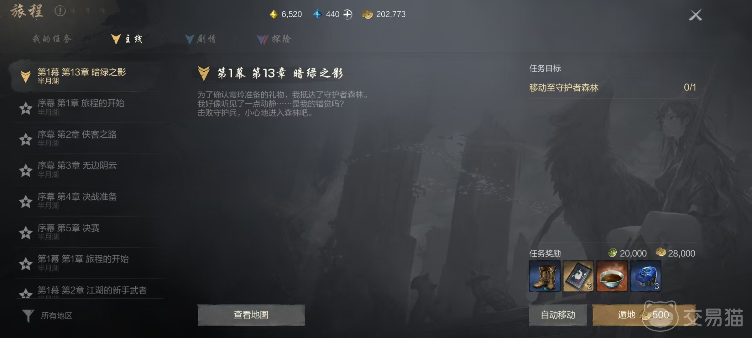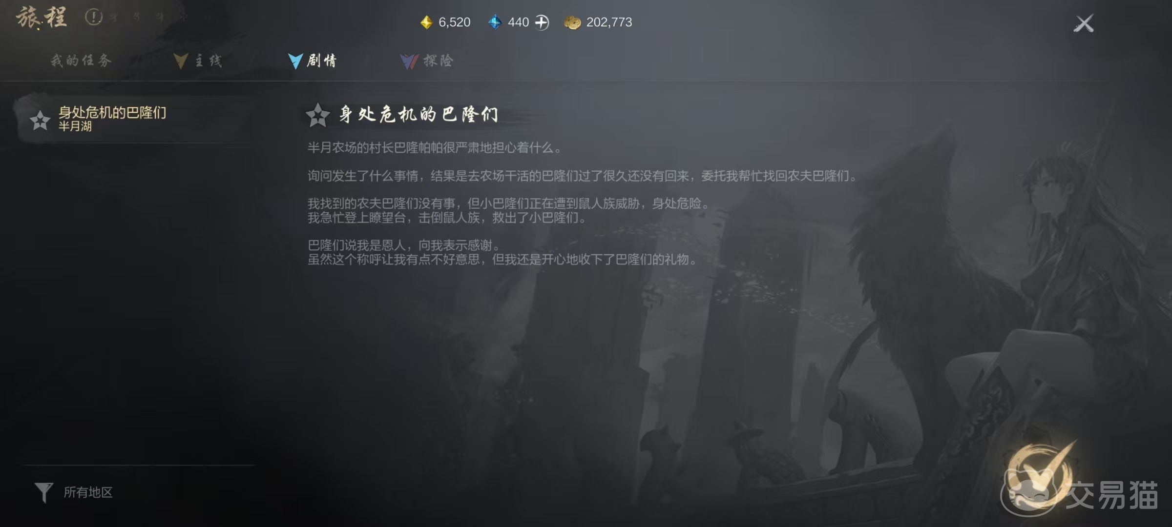 在主页面中进入到旅程功能之后,可以看到有多个不同的选项。首先看一下任务分类,包括主线、剧情、探险这三个类型。其中主线是大家升级所必需的,经验多还会给予很多前期提升实力所必需要的道具,装备,铜币等。主线任务也会引导大家前往大世界的各个区域,解锁更多的储存点。剧情则是随着主线任务推进,呈现出来的系列任务,剧情任务给予经验和道具奖励也很多,会随着等级不断解锁更多剧情任务。