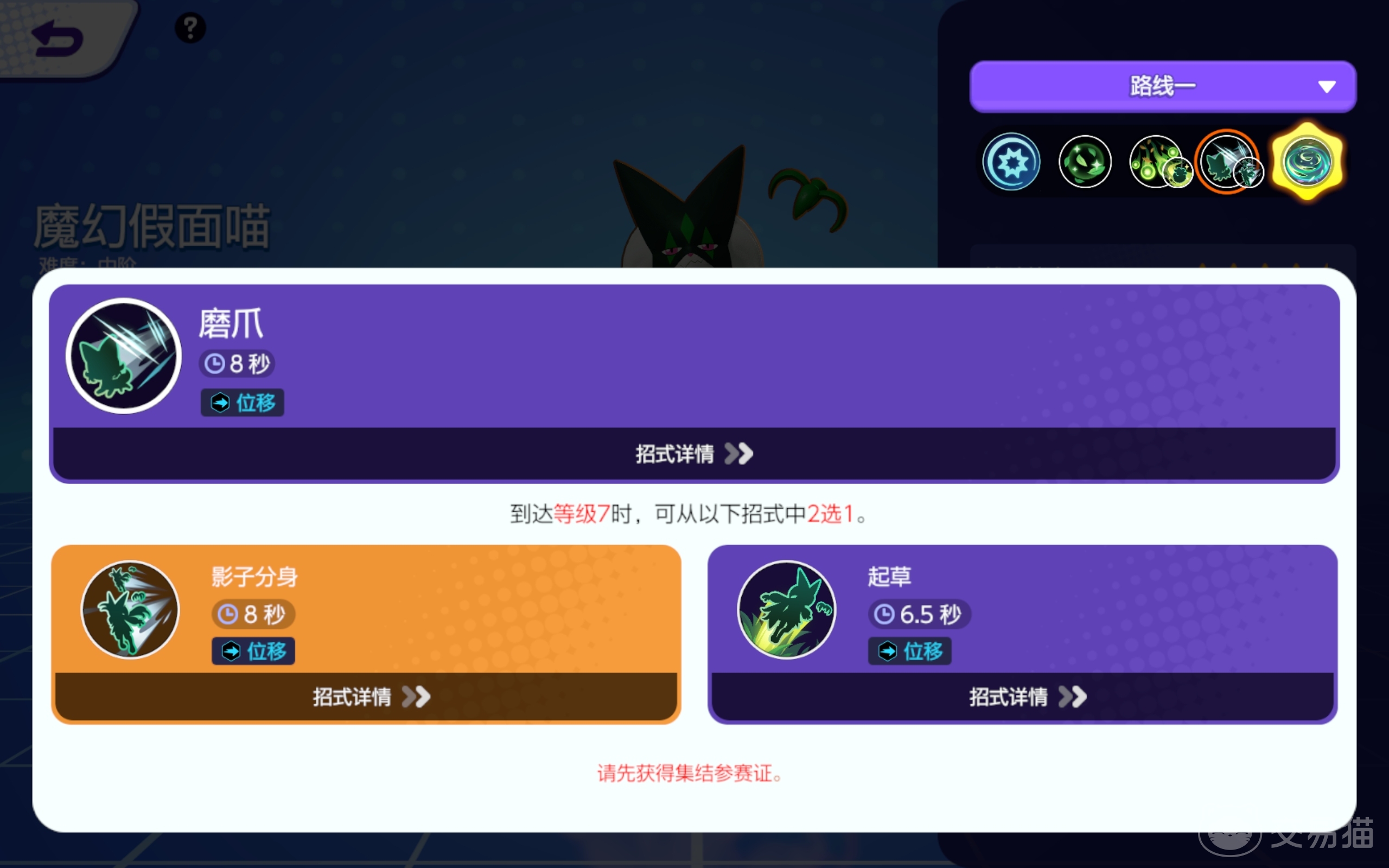 经过一段时间的体验,如果你对自己的技术很有自信,想试试魔幻假面喵,那么可以直接点击购买选项去获取它的专属参赛证。