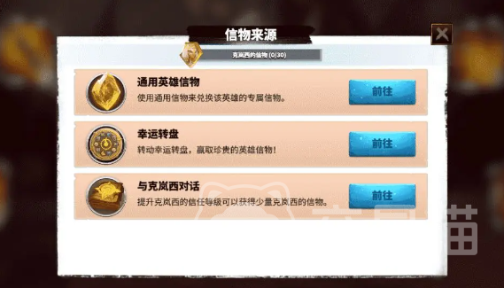 在看到这里时,玩家会关心这一个英雄,有哪一些主要的获取方式,目前有5种不一样的方式。玩家可以通过幸运转盘,还可以通过信物来兑换,或者也可以购买每日特惠礼包,在荣誉会员中每日礼包,还有可以和克岚西对话。