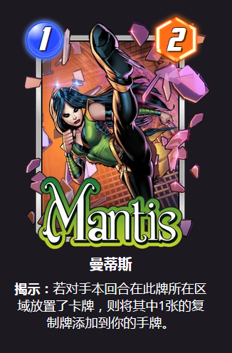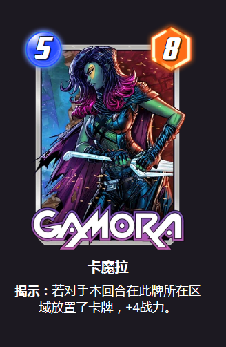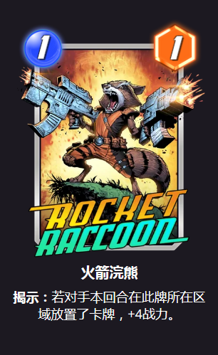 小编认为以下一些卡牌比较适合配合。火箭浣熊,如果若对手本回合在此牌所在区域放置了卡牌,那么增加4点战力。曼蒂斯,如果对手本回合在此牌所在区域放置了卡牌,那么将其中1张的复制牌,添加到我方的手牌中。星爵,如果对手本回合在此牌所在区域放置了卡牌,那么增加4点战力,同样效果的还有格鲁特。山娜,随机向我方的各个区域各添加1张初始能量消耗为1的卡牌。惊奇队长,这张牌会在本局对战结束时,移动到能为我方赢下对战的区域中。