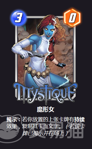了解了该区域的具体效果之后,就要找一些适合在这里使用的卡牌,为的就是能够更好地发挥出区域与卡牌的效果。小编认为以下几张卡牌非常适合与峰顶太空站进行搭配。魔形女,若放置的上张卡牌有持续效果,则复制其卡面文字,需要该卡牌已经揭示并在场上才能生效。脑波强化机,使得所有战力最高的卡牌+2战力。千面人,随机变为对手1张手牌的复制牌。这三张卡牌除了自身的效果之外,他们的共同点就是都属于三费零战力。这样经过一番转换,效果相信大家就很清楚了。