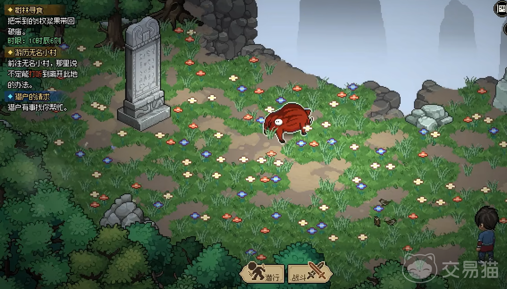 提升驯兽等级的另一种方法是通过与猎户的互动。在村子及周围迷踪林中,找到并刷满好友度至100的猎户,就能获得100点驯兽经验,达到驯兽一级。这时,可以去后山的悟道之地收养红色的小猪,得先跟它打一架才能够收养它。