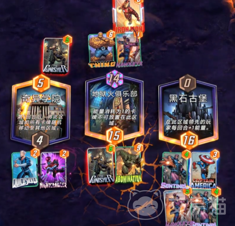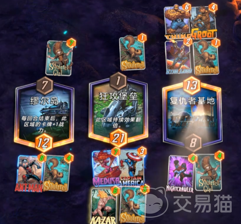 另外就是在游戏里要用万磁王的新星大法制造出更多优势,在对战的时候经常能看到对方成员中会有一些高耗能的角色,可以把这些角色吸到自身区域较强的地方,对手看起来能力比较强劲,但是和海煞对比起来战斗力也会变得比较薄弱,可以选择在对战的时候先把攻击力为负的卡牌,换到对面的区域,这样对手对这个区域里的卡牌就无法进行操作,然后把这个角色卡牌也放置过去,就能保证赢得胜利。
