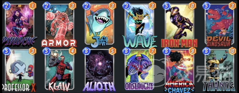 除了以上适配区域的卡组之外,小编也为大家带来了一些普通卡组的推荐。小伙伴们可以选择x教授、克劳、杰夫、艾里奥斯、钢铁侠、狂攻。主要的思路是跳x教授,提前拿下一路,也可以用克劳和杰夫给x教授的区域加战斗力。艾里奥斯可以单独赢下一路,或者小伙伴们也可以用钢铁侠加狂攻这个组合。