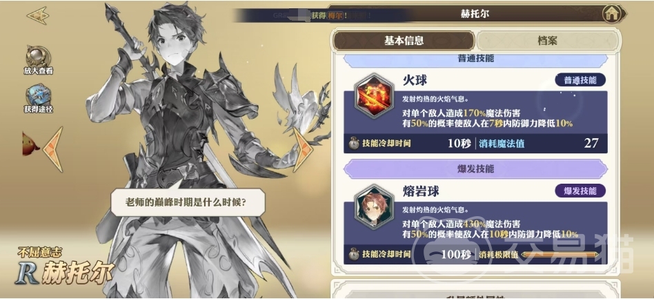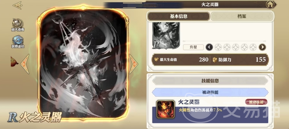 无论是火球还是熔岩球,都体现了赫托尔对火焰的深刻理解与娴熟运用,他通过这两种技能,将自己的火焰意志转化为强大的战斗力,为学院争光,也为自己的梦想而战,火之灵器,这件R级的神器,仿佛蕴含着火焰的精髓与力量,它的被动效果专为火属性角色而设,能够使火属性角色的伤害提升7.5%,这为如赫托尔这样的火属性角色带来了显著的增益,火之灵器与同等级的赫托尔很适合。