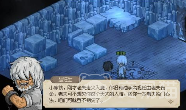 到达霖安城的云林寺后,玩家需要点击中间的塔以开启隐藏的入口。在进入冰牢之前,带上紫色品质的食物和酒作为礼物,这将有助于提升与老魔的好感度。在冰牢内,通过选择恰当的对话选项并赠送礼物,可以迅速提升与老魔的好感度。好感度达到一定程度后,老魔会与你进行剪刀石头布的游戏,连续赢得十次可以获得特殊的奖励。进一步的交流还将解锁更多的技能和秘籍。