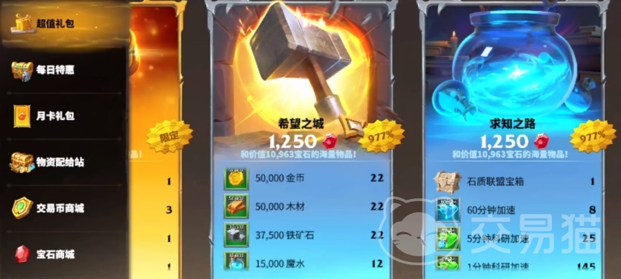 月卡不仅是让大家去获取各类资源,更是能够稳定的提升资源获取量,帮助各位在科技研究和建筑升级上节省大量时间,拥有更多资源可让玩家更快解锁“第二科研队列”和“建筑第二队列”,这两项功能对于提升大家的发育速度而言影响还是非常大的哦。