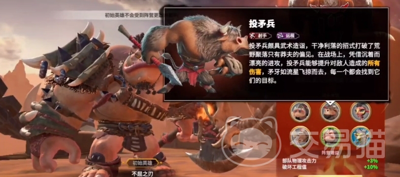 兽族以强大的单体和野战能力为主,拥有超高的生命和攻击力,尤其在野外战斗中表现十分的出色,适合具有侵略性的玩家来选择,劣势主要就是兽族的建筑和科技成本是比较高的,需要投入大量的资源才能发挥出效果,前期的发展也比较的慢,因此建议选择兽族的玩家,在游戏初期时应该专注于资源方面的积累和经济的建设,只要条件成熟,就能够迅速的去进行转型,展现出了强大的战斗力。