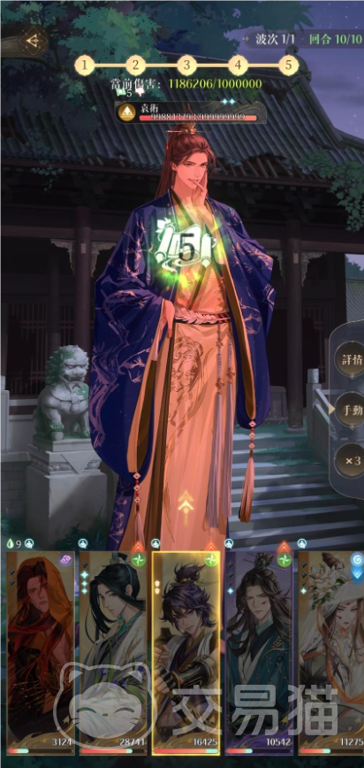 思路:利用太史慈无视敌方免伤的特性打输出,然后在破盾后用技伤张角配合陈登,快速放大补伤害,总伤害量会根据太史慈接到的两回合单数量去浮动。任意输出最好是多段攻击角:张辽(普攻两下)、蔡琰(技能两段)、马超(受击反击),早点破盾伤害就越高,整体练度要求就可以低一点。但只要练度都有到,单段攻击人也没问题:杨修、香香、阿蝉都OK。