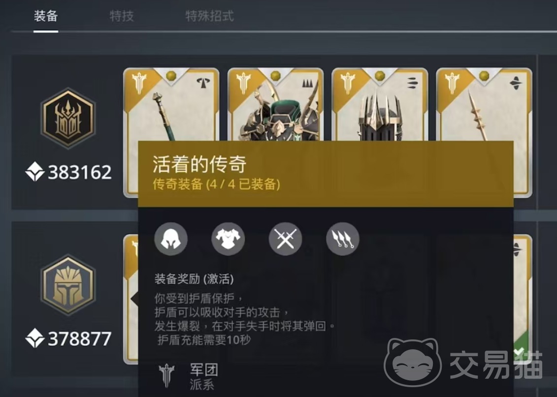 这一套装备的效果是受到护盾保护,护盾可以吸收对手攻击发生爆裂,在对手失手时将其弹回,护盾充能需要10秒钟。这是一套属于军团派系的装备,它自身的外形也符合军团的特点。