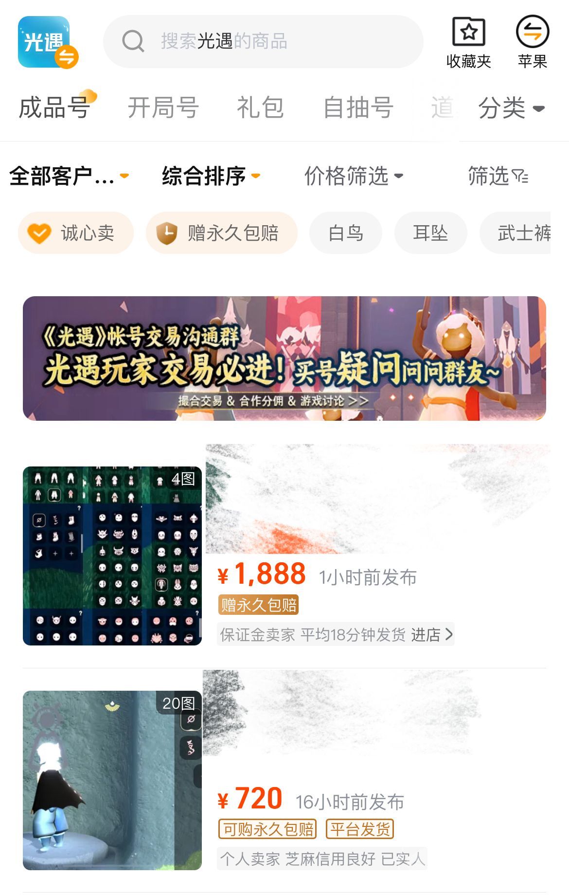 今天关于光遇卖号怎么选平台,这个话题的全部内容就暂时给大家分享到这吧,结合图文来看交易的操作流程十分简单,即使是新手玩家也可以轻松的玩转,关于周边的各种道具和装备都可以在这里进行交易,低价的折扣捡漏专区,说不定就会遇到你心仪的商品。