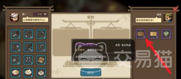 在选择易物选项后,游戏会自动跳转至一个新的界面。在这个界面中,玩家可以看到一系列可供交换的物品,其中就包括“不知名字帖乙级”。找到不知名字帖乙级后,玩家可以将自己拥有的物品放入交易框中,随后点击“成交”按钮,即可完成这次交换,从而成功获得不知名字帖。