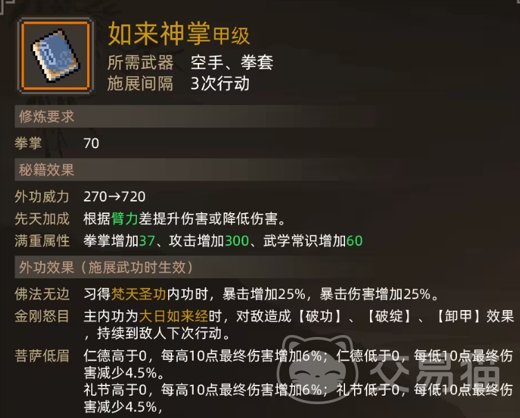 这是一门深植于佛门悟道的绝世武学,玩家必须提升拳掌技能至50以上,并在释法寺的石碑前战胜心魔,才能领悟其深层的力量。