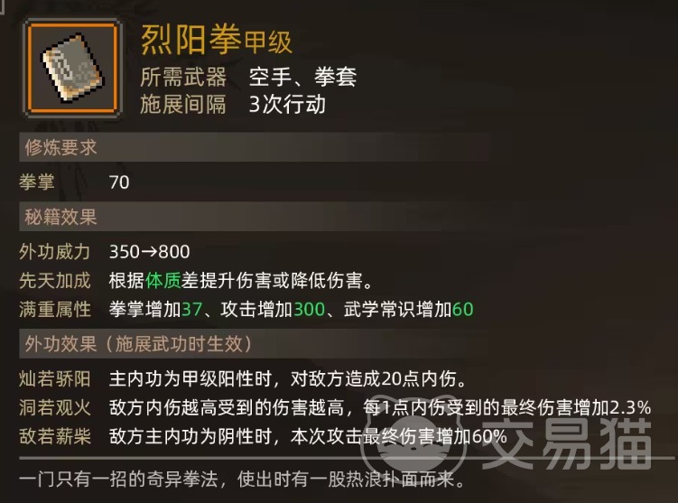 未能成为副宗主的玩家将与圣火宗方啸天展开一场生死战斗,胜者将获得这门代表不屈战斗精神的拳法。