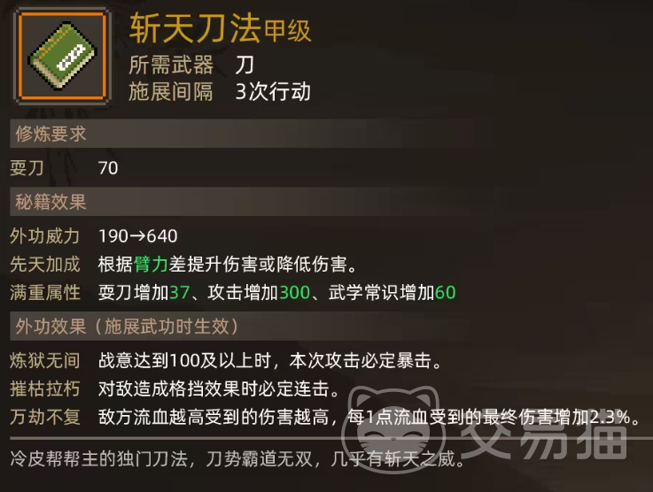 在冷皮帮下选择让出宝藏给冷皮帮,赢得霍诗楼的信任后,便能掌握这门刀法。