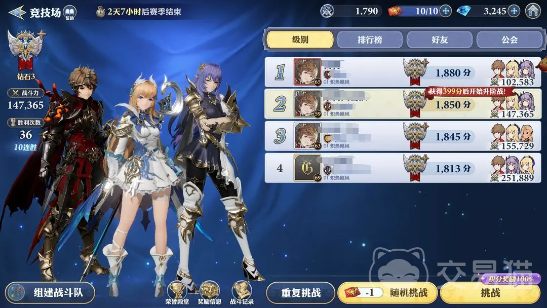 进入到竞技场之后,大家是可以直接对其中的真人玩家发起挑战的,通过与其他玩家之间进行对抗,获得胜利之后,就可以不断的提高自己的积分,这个玩法是有段位累积的,只有积分提升之后,才能不断升高段位,而且每次进行挑战,都是需要使用出入券的。