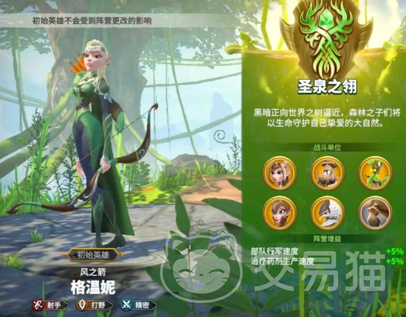 最后要介绍的是圣泉之翎,代表的就是精灵,这个阵营在作战上有着极快的速度,不管是移动速度还是攻击速度都十分快,喜欢灵活作战或快节奏对战的玩家可以选择,该阵营在治疗速度上会有额外加成。