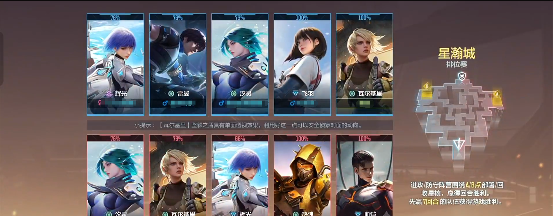排位的玩法就是一种竞技性更加强一些的玩法了,这个玩法简单来说其实就是打比赛了,主要的战斗方式就是,打13局对局,而胜利了7局就可以进阶,这种玩法中比较独特的一点就是,在进入到第七局时,进攻和防守方这两个阵营的角色身份是会进行互换的。