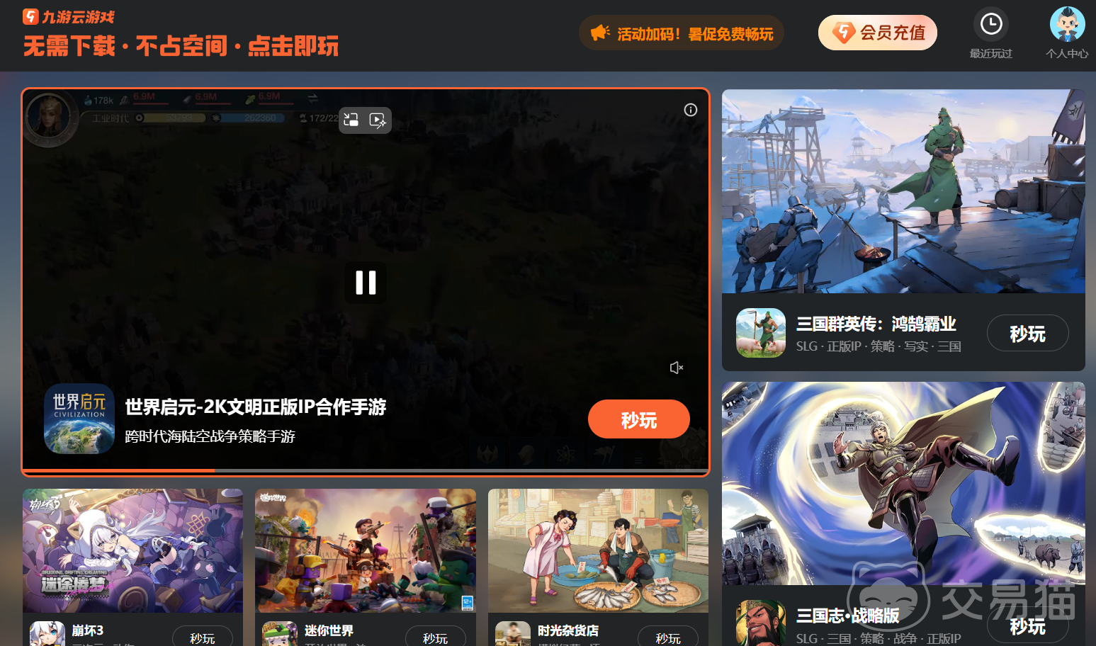 首先,让我们来看看云游戏的优势。通过九游的官网,你可以轻松进入云游戏页面,操作非常方便。在这里,你可以即点即玩各种PC云游戏,无需下载,立刻就能享受游戏的乐趣。这种方式让游戏体验变得更加轻松和愉快。