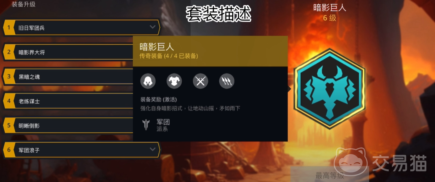 首先是这套装备的外观,它是一套以大锤为武器的装备,通体都是暗影基调,在打的过程中头盔处还会冒出特别炫酷的红光效果,宛如从暗影军团中出现的大力士一样,该套装所属的派系是军团派系,喜欢暗黑风格的朋友们应该会喜欢这身装备。