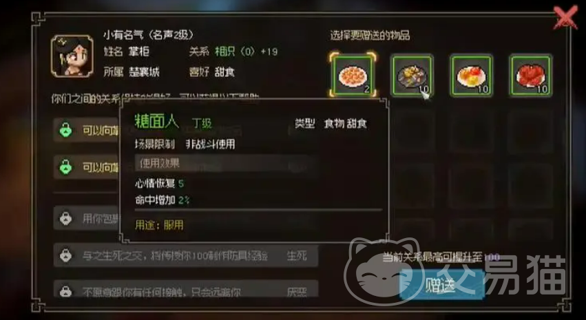 大侠立志传是一款充满奇遇与挑战的武侠游戏,在游戏中不仅需要玩家展示武侠技能,更需掌握生活中的点滴细节,以获得角色成长所需的必要物资。今天小编就带来大侠立志传乙级甜食获取方法。乙级甜食作为提升人物好感度的重要物品,对游戏进程有着不可忽视的影响。