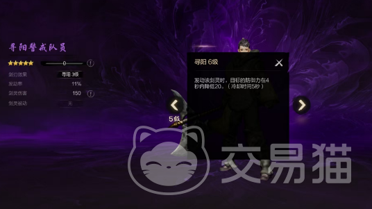 寻阳警戒队员是一个可以一路升级到5星的小能手,在游戏当中是比较好用的。它的特色技能是“寻阳剑刃”,这个技能虽然很简单但是效果还不错。就是能让敌人的防御力在4秒内降低20%,虽然时间不长但关键时刻能帮玩家大忙。技能在每5秒之后就能够用一次,所以大家可以频繁地利用,当然也有人觉得这个触发概率比较低只有11%,但是只要觉得多试试就会有惊喜的。一般都是新手喜欢使用这个角色,因为新手的等级比较低,想要获取其他高级别的剑灵也获取不了。