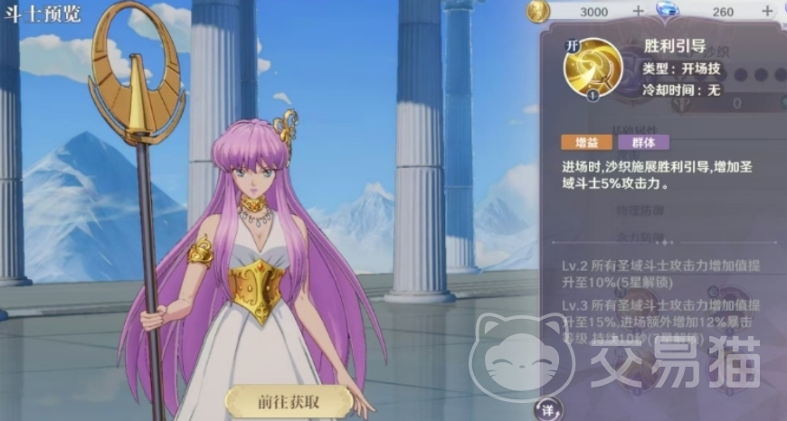 今天为大家带来的介绍是关于圣斗士星矢当中一个核心角色,这个角色是很多人认为的女主角,本期小编带来的就是圣斗士星矢重生2雅典娜属性分享,雅典娜的整体效果其实在游戏中还是非常不错的,至少是很适合配队的,如果大家喜欢原著当中的雅典娜,建议以下介绍可以先来了解角色详情。