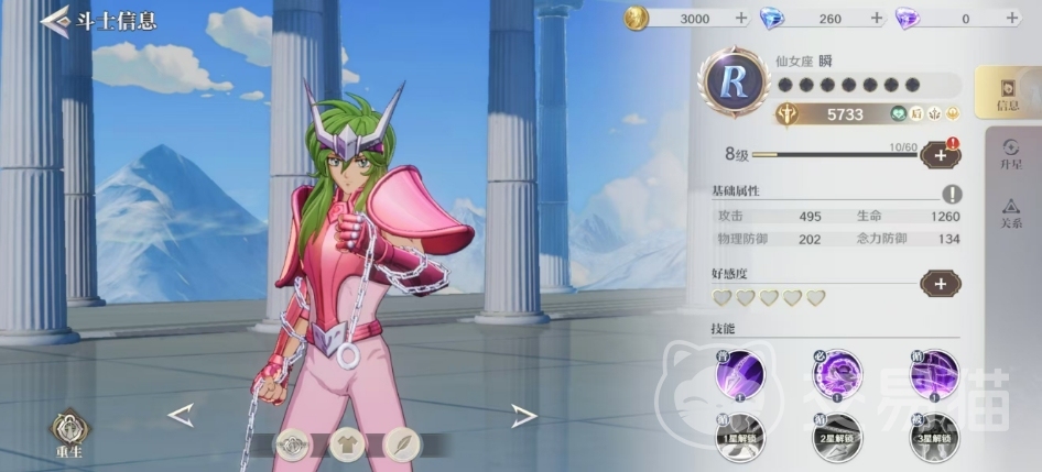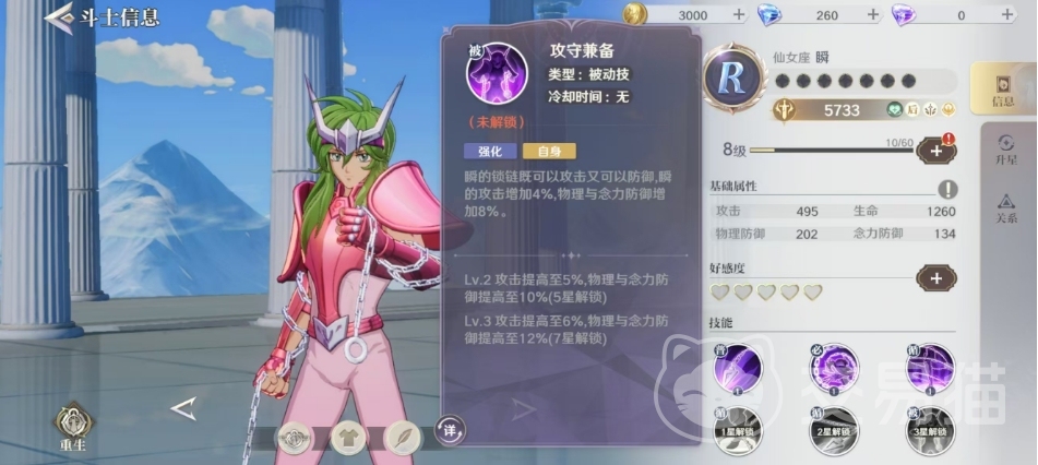 以上就是圣斗士星矢重生2仙女瞬战斗力如何的相关介绍啦,可能前期很多玩家还没有搞清楚这个角色的使用效果,但是从品质上面来看的话,前期使用绝对是够的哦。